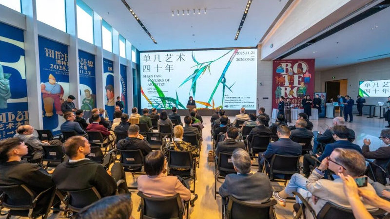 开幕式现场 2025年11月21日,“单凡艺术四十年”展览在广东美术馆新馆开...