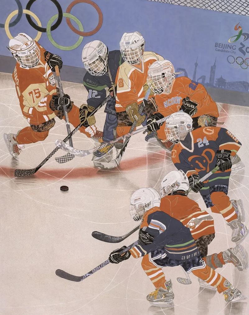 主展场广东美术馆部分分为五个版块:第一版块“形力交融”聚焦运动起势的形与力,第二版块“动势流光”捕捉定格运动瞬间,第三版块“竞界争锋”突显对抗的炽烈激情,第四部分“息心同衡”探寻身心平衡之道,最后第五版块“同心铸辉”超越体育本体,礼赞人类共同价值。