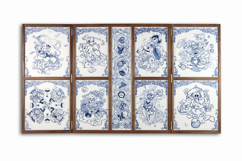 《摩登时代I》薛雷 胡桃木、手绘青花、瓷板