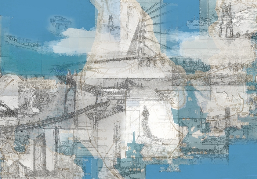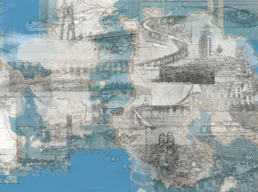 整幅画由“点-线-面”构成。我们以四个经济特区的行政版图为面,以港珠澳大桥为线,以四个经济特区40年的建设成就为点,“点线面”结合,形成了恢宏的改革开放40年图卷。