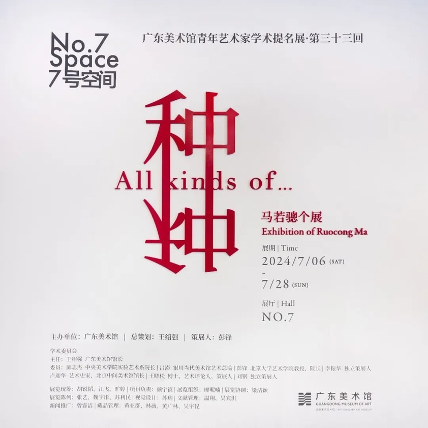 由广东美术馆主办、王绍强担任总策划、彭锋担任策展人的“7号空间——广东美术馆青年学术提名展第三十三回 种种:马若骢个展”在广东美术馆二沙岛馆区展出。
