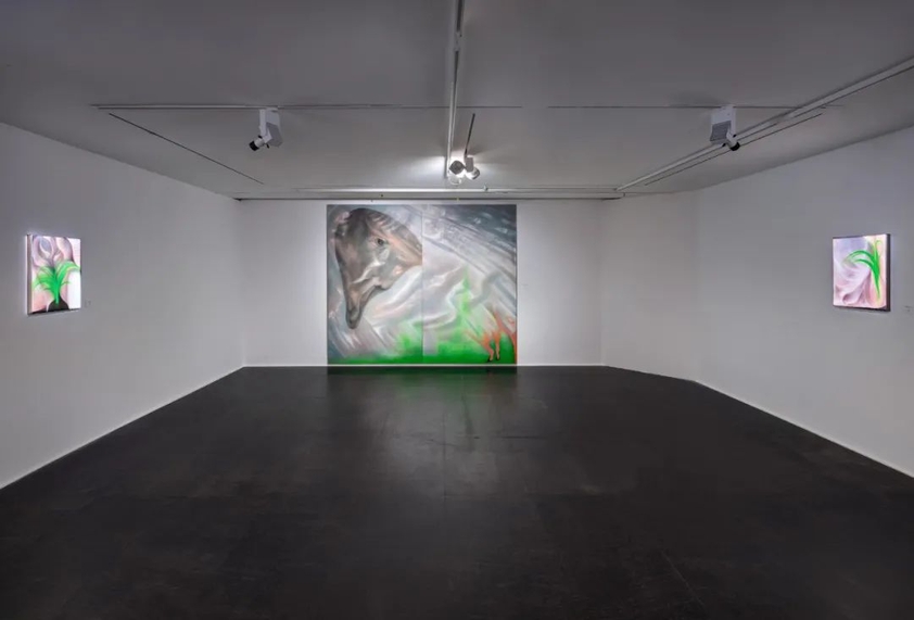 马若骢生于广东,成长于北京,是一位有着欧美跨媒介学习经历的艺术家。她的绘画创作以具象为主,执着于描绘种种女性形象。身体、对视以及绘画表象所携带的权力关系是她作品的核心元素,这种标志性风格也延续到她回国后的艺术创作中。值得留意的是随着创作环境的转变,马若骢新作的视觉风格也随之变化,她逐渐从具象转向表现。在这一阶段,她以朦胧的笔触描绘出人格化的动物形象和略带叙事性的梦幻场景,并在物象之间建立起富有冲击力的构图关系。这些绘画不仅是她对“安全静态”的传统美学秩序的挑战,还展现她对自然和生命这一深刻命题的思考,使她的作品具有强烈的视觉冲击力和深远的情感共鸣。