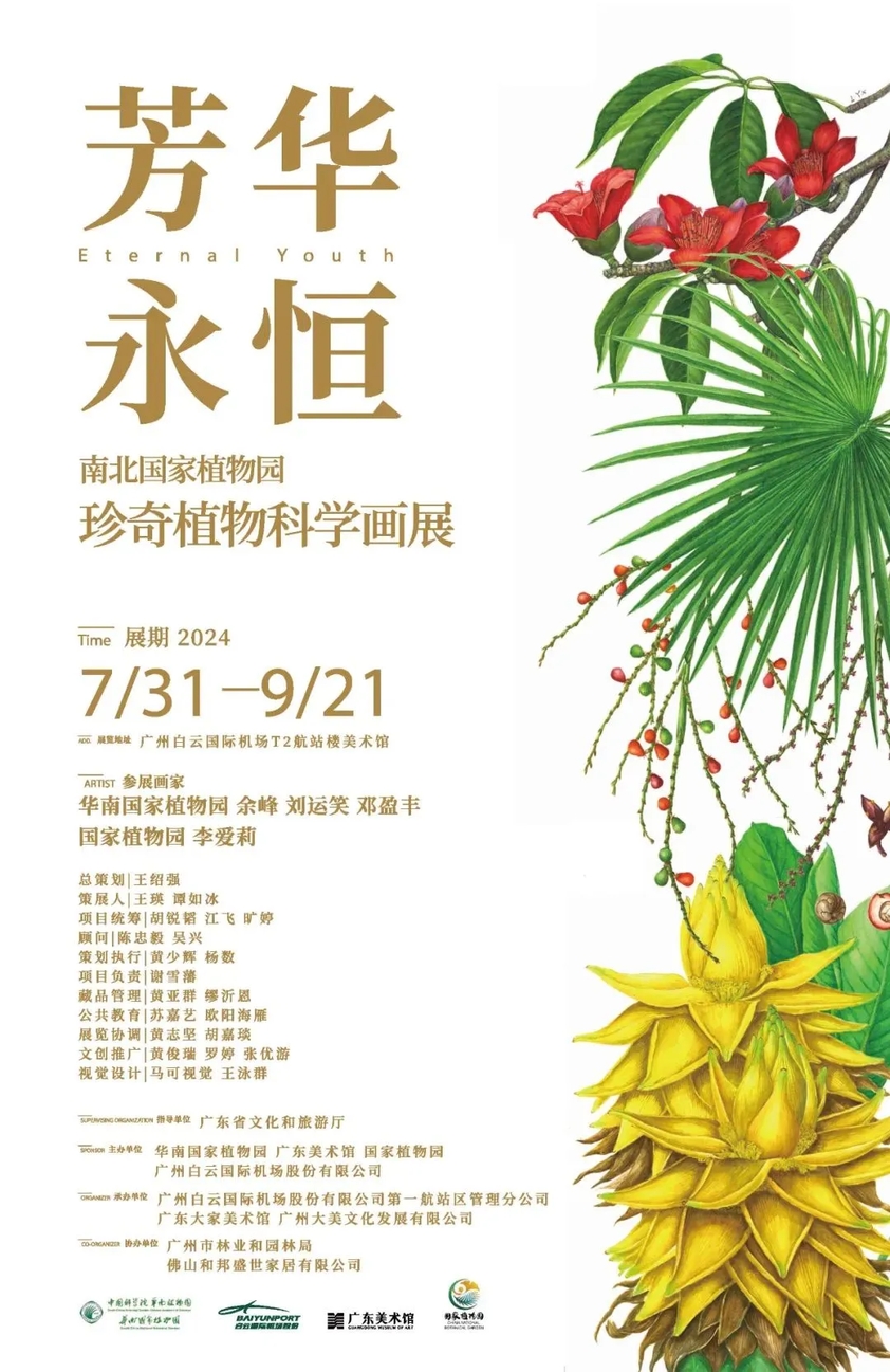 近日,由广东省文化和旅游厅指导,广东美术馆、广州白云国际机场股份有限公司、华南国家植物园和国家植物园共同主办,广东美术馆全资公司“广州大美文化发展有限公司”联合广州白云国际机场股份有限公司第一航站区管理分公司、广东大家美术馆共同承办的 2024年“艺术进万家”系列展览之“芳华永恒——南北国家植物园珍奇植物科学画展”开幕式在广州白云国际机场T2航站楼美术馆举行。
