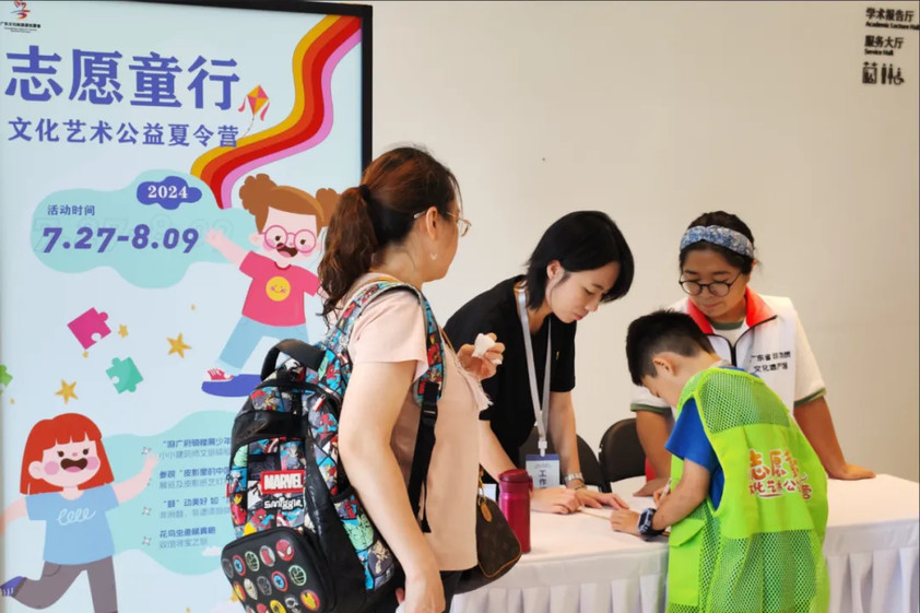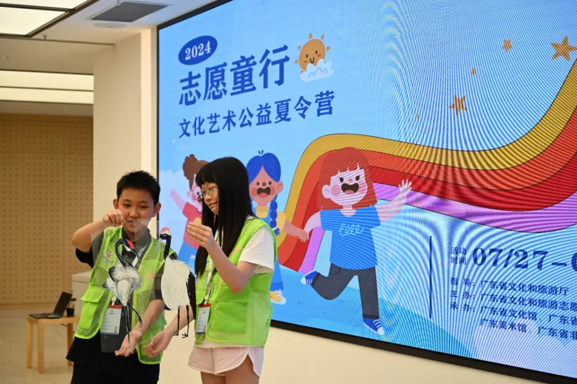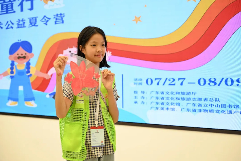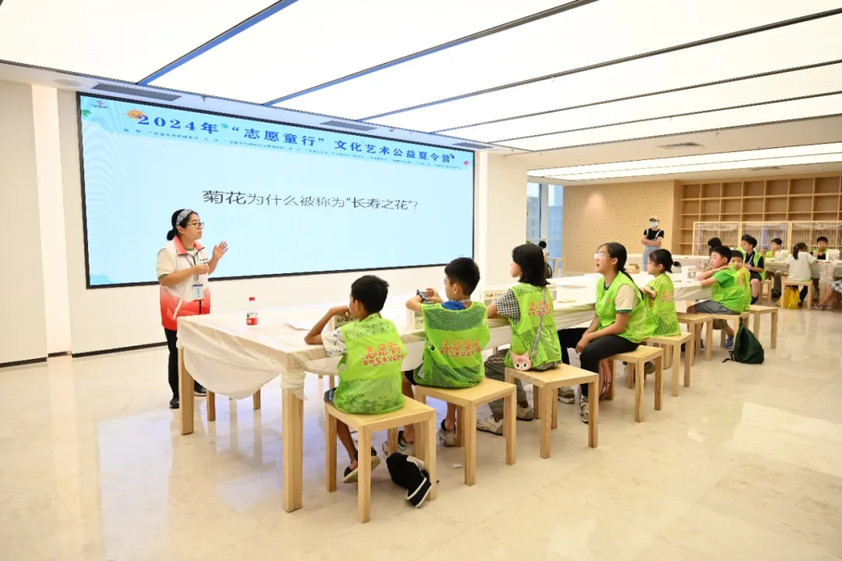 作为广东省文化和旅游志愿服务品牌项目,“志愿童行”夏令营自2016年创办,至今已经举办九届,夏令营联合多家省级公共文化场馆的文化志愿者力量,致力于提高特殊群体的获得感和幸福感,让亲子家庭在共同探索岭南风土人情、感受文化艺术熏陶的同时,增强亲子之间的情感联系。2024年“志愿童行”文化艺术公益夏令营(简称“夏令营”)由广东省文化和旅游厅指导,广东省文化馆、广东省立中山图书馆、广东省博物馆(广州鲁迅纪念馆)、广东美术馆和广东省非物质文化遗产馆共同承办,已于7月27日启动。此次夏令营将开展三期,预计约有100名学员将先后到访五家公共文化场馆,深度感受岭南文化,体验艺术创作的乐趣。