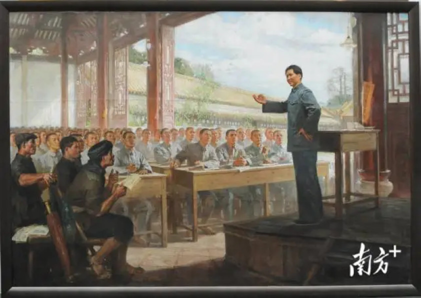 莫述文修复的陈衍宁、汤小铭油画《毛主席讲授〈中国社会各阶级的分析〉》。受访者供图。