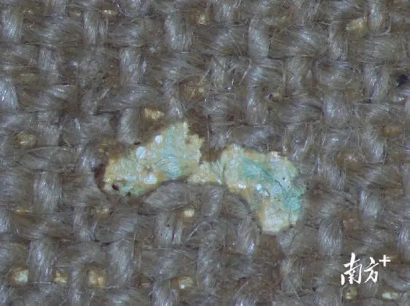 显微镜下汤小铭油画《悠然》上的白蚁洞。受访者供图。