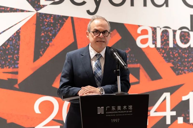 在开幕式上,广东美术馆馆长王绍强、法国驻广州总领事福希玮、本次策展人乔纳斯先后致辞,本次展览艺术家贝纳·维内讲话。