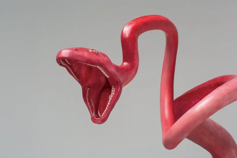 《行舍》《行嗔》和《行形》是向京“S”系列中的三件以“蛇”的形态展现主题的作品,本次展出《行嗔》。完成“这个世界会好吗?”的子系列作品——“异境”系列后,向京反思到,在对于人性的隐喻中,“异境”系列作品的动物形态过于温情脉脉,以至于其中没有一件以猛禽的形式呈现的作品。在“S”系列中,这种遗憾是以凶险而暴虐的“蛇”的形态展现的。作品的题名和隐喻义提醒着人们回想起《论语·述而第七》中“用舍行藏”的表述:“用之则行,舍之则藏”。