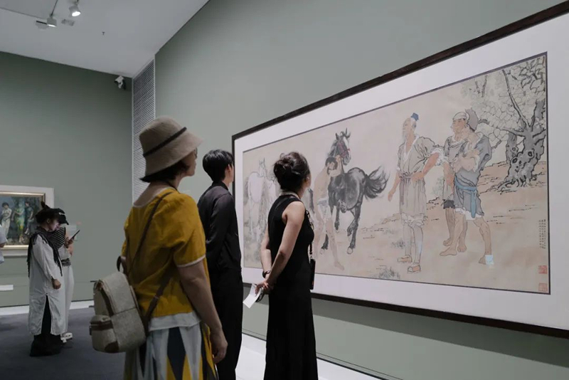 李若晴:徐悲鸿先生是二十世纪中国最为伟大的艺术家之一,只有极少数的人能够到达他的位置。这样的艺术家在二十世纪是比较少的。今天看到这个展览觉得还是蛮赞、蛮震撼的,里面有徐悲鸿的几件很重要的作品,像《愚公移山》《九方皋》等等。