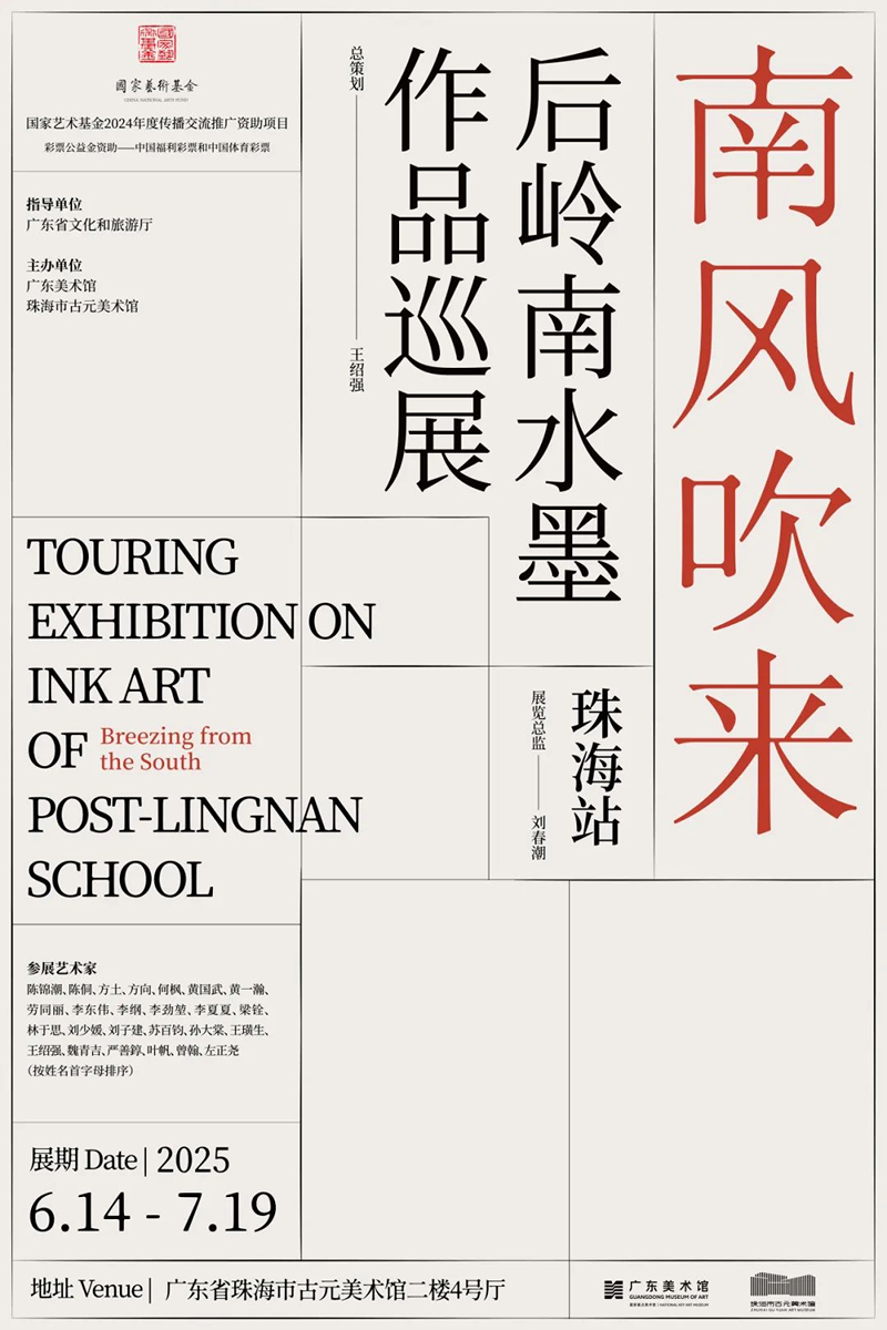 近日,由广东省文化和旅游厅指导,广东美术馆和珠海市古元美术馆主办的“南风吹来——后岭南水墨作品巡展(珠海站)”正在珠海市古元美术馆展出。本次展览为国家艺术基金2024年度传播交流推广资助项目,旨在开展优秀展览活动,促进全国各地之间的文化交流。后岭南画派作为中国实验水墨多元生态中不可或缺的一环,在中国艺术现代化进程中占据着重要的地位。