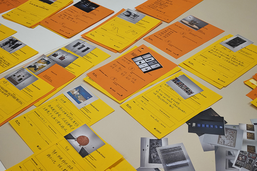 漫步在展厅中,一件件当代艺术作品触动着观者的心。在“艺游流动站”,公共教育团队用投稿创作纸和纪念印章,鼓励观众选择心仪之作进行留言推荐,或捕捉关键词创作诗文,以此与展览深度互动,发掘城市记忆与情感共鸣。
