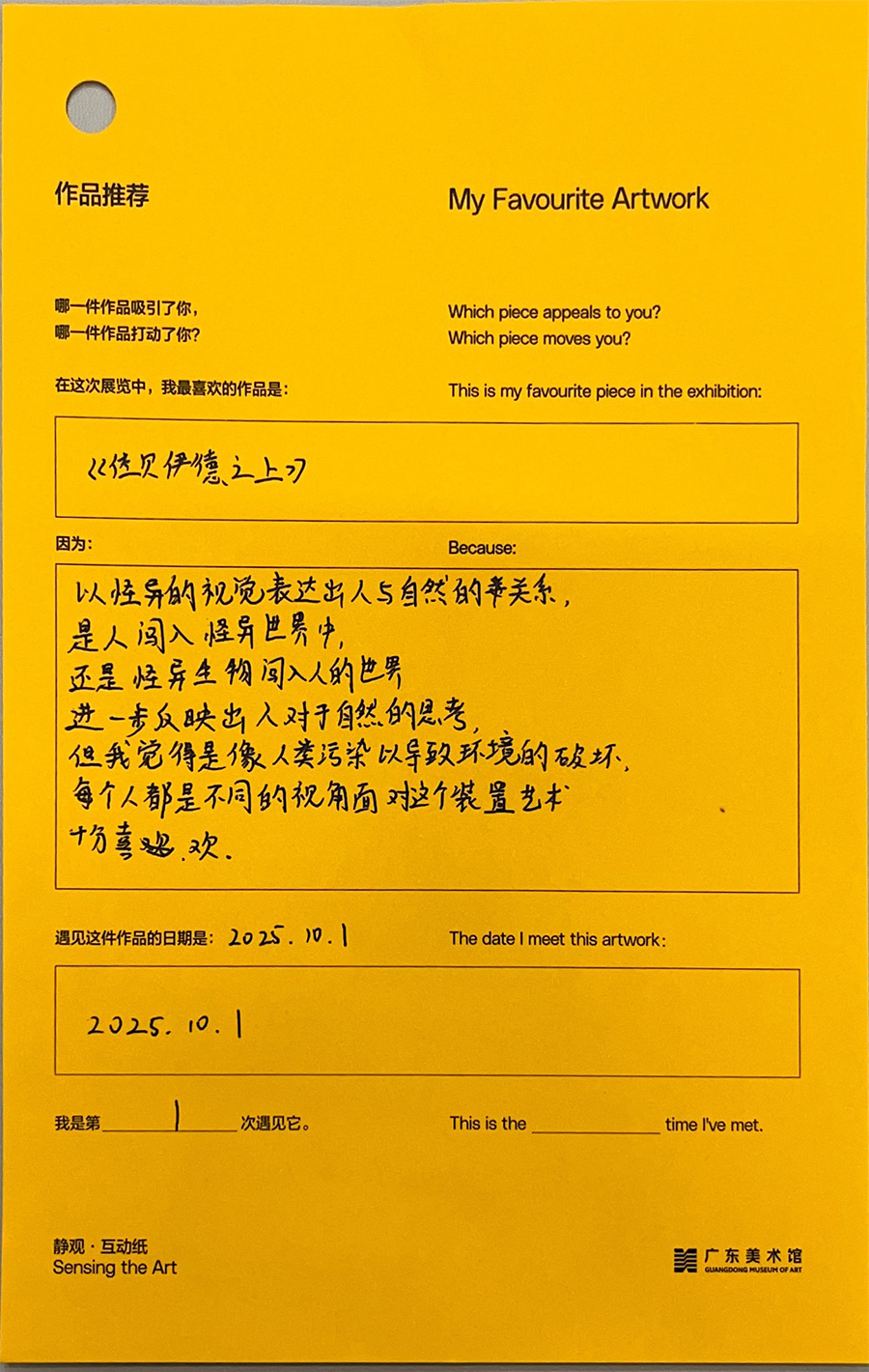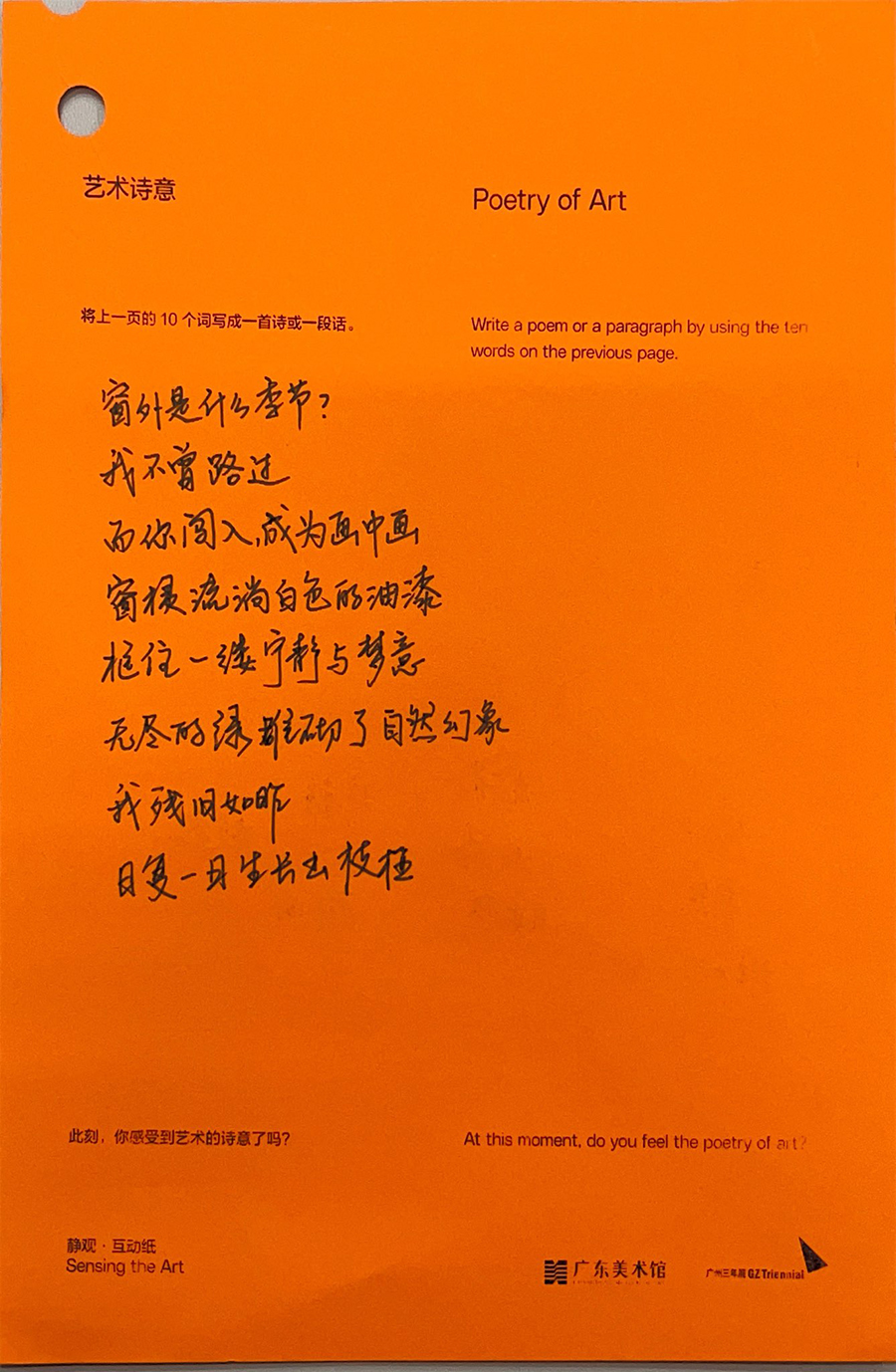在活动中,许多观众为自己喜爱的作品写下真诚的留言;还有观众在展览中产生了强烈共鸣,通过“艺术诗意”互动游戏,创作出情感丰富、视角独特的短诗或散文。