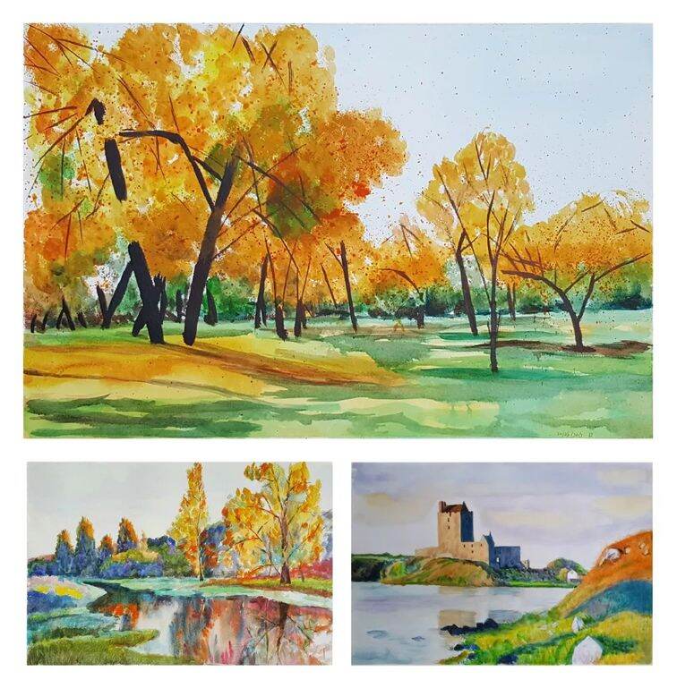 水彩(风景)精品班、纤维艺术班、书法班、国画精品班: