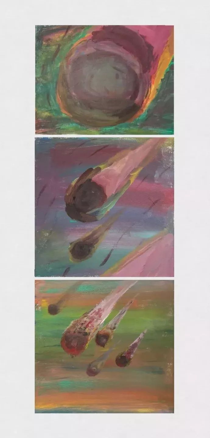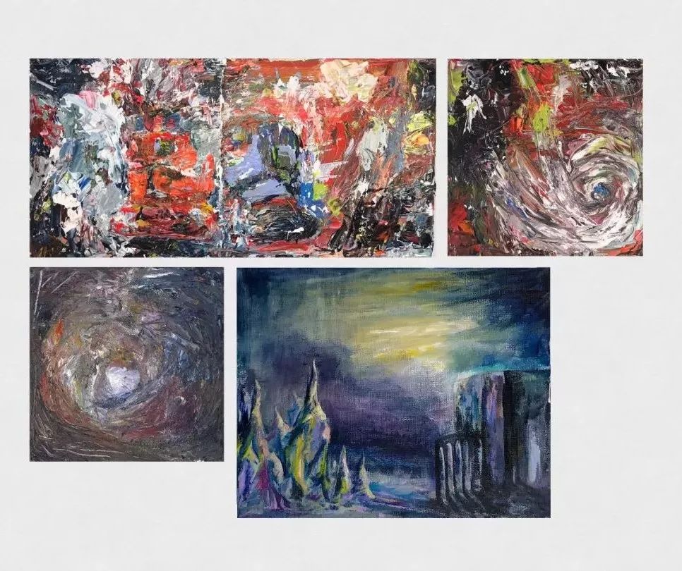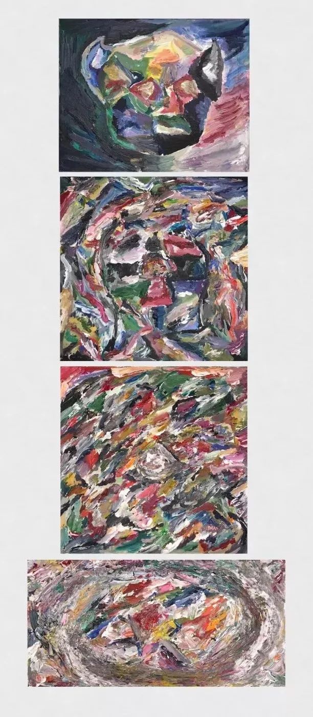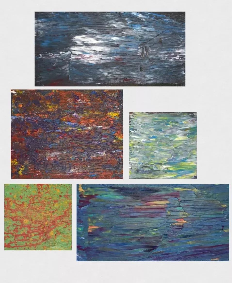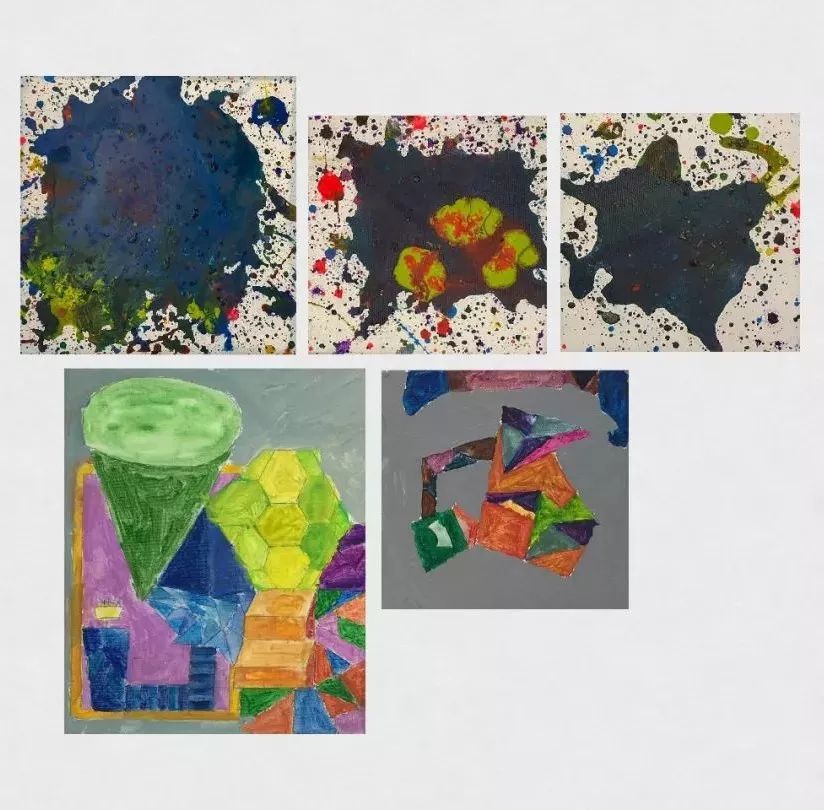 在教学深入的过程中,当同学们对色彩中的色调与明度变化有了初步认识,之后进入赏析抽象画派大师画作,学习“具象”与“抽象”在概念上的区别,老师引导大家把画布当作调色盘,从形象束缚中解脱,把颜色层次、笔触变化、形状比例、构图作为色彩实验中需要考究的要素,在不断的“玩耍”实验中发现自己的色彩节奏与氛围,从自己的画中捕捉灵感,最后进行衍生系列创作。