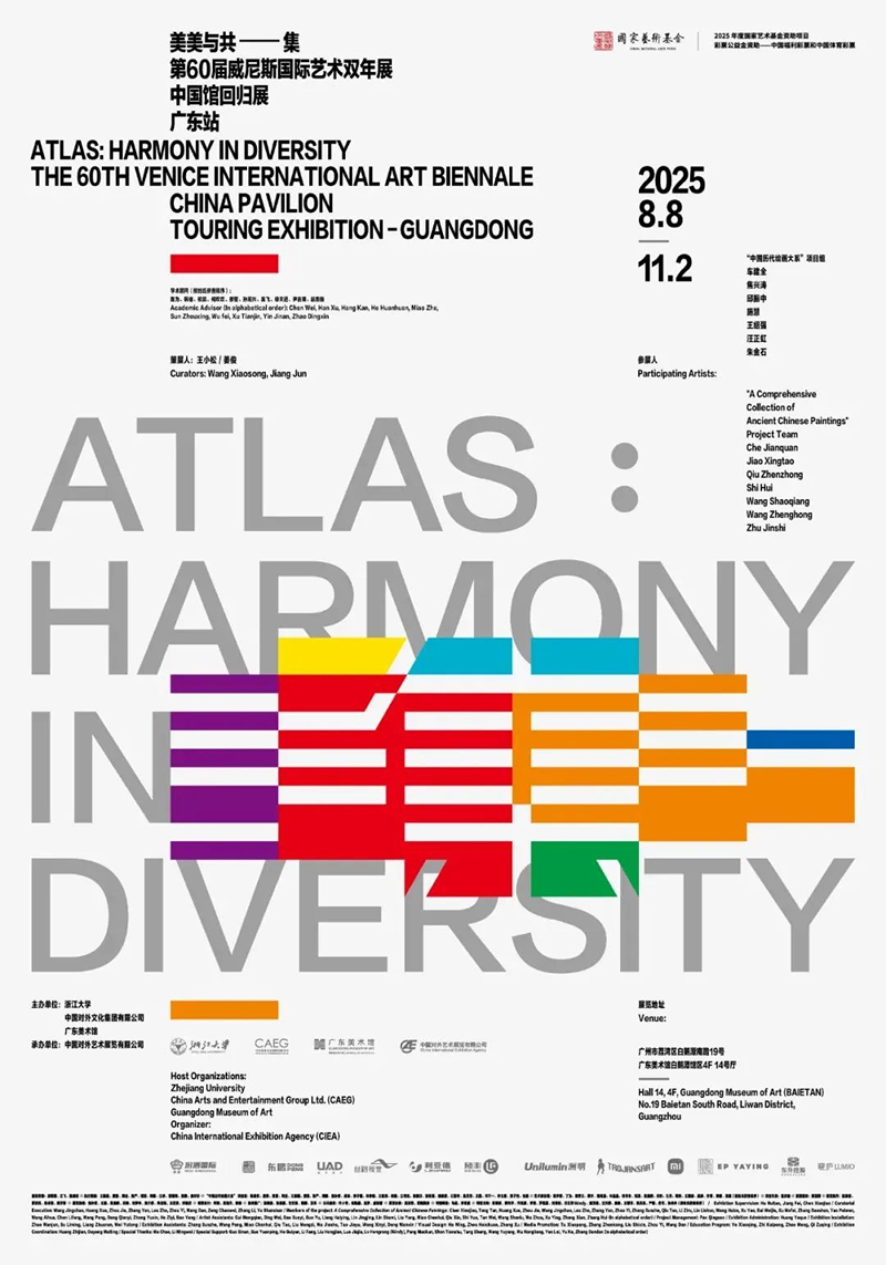 After its successful debut at the Venice Biennale, “Atlas: Harmony in Diversity” returned to China, with its first stop at the Art Museum of Sichuan Fine Arts Institute, where it attracted considerable interest and an enthusiastic response. After Chongqing, the exhibition now arrives in Guangzhou, continuing its exploration of cultural convergence and artistic dialogue in the Lingnan region, showcasing the spirit of the times and artistic dynamism embodied in “Harmony in Diversity.”