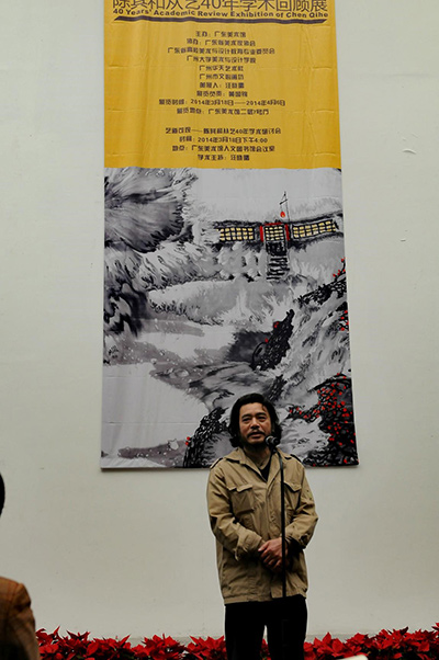 展览期间,前来观展的相关专家学者还参加了“艺道可观---陈其和从艺40年学术研讨会”,广州美术学院院长黎明指出陈教授的冰雪山水题材突破前人藩篱,在“雪”景之外,独辟蹊径在“冰”上造意,丰富了冰雪画的内涵,为南国带来了独特的异域韵味和扑面的丝丝清凉,表现出独特的艺术魅力。他的艺术创作,不仅进一步丰富了岭南中国画坛的面目,而且也有力地拓展了岭南观众的视觉经验和审美意趣。陈其和教授一直坚持“造化心源,守常达变”,在艺术道路上孜孜不倦地探索求新,怀着对艺术的使命感不断创作出传统与现代交融的作品,一直为艺术教育和地方文化发展贡献着自己的力量。