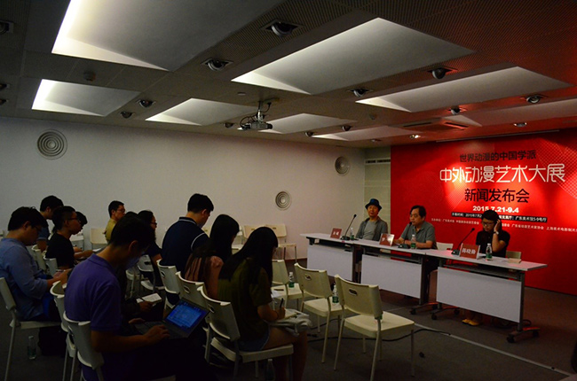 2015年7月15日, “世界动漫的中国学派——中外动漫艺术大展” 新闻发布会在广东美术馆人文图书馆举行。本次展览策展人:广东美术馆馆长罗一平、广东省动漫艺术家协会主席金城出席发布会,对即将于7月24日开幕的“世界动漫的中国学派——中外动漫艺术大展”的筹备情况、作品内容以及展览意义进行介绍,并答记者问。