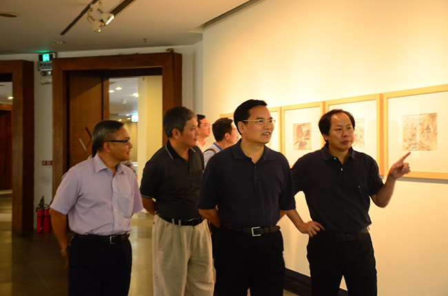 梁伟发副主席一行沿着展览的顺序,以倒叙的方式回溯赖少其的艺术生涯,从八十岁后用生命绽放的“大道之象——八十后作品”色彩之旅开始,通过“意写天地——丙寅变法作品”“我法自然——黄山时期作品”“出入古今——师法传统作品”“天涯遊踪——写生作品”“木石铿锵——版画作品”“碑骨帖韵——书法作品”等七个部分回顾与呈现赖少其在艺术之路上所走过的一石一阶、所累积的一砖一瓦。梁伟发副主席高度评价赖老作品,“不落俗套,别具一格”。