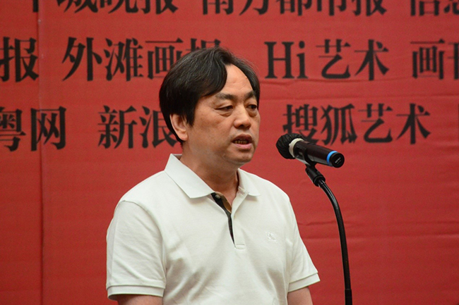 正是基于这两点考虑,我们要重新认识我们广东的这位艺术巨匠,重新认识这位能够真正承接“两高一陈”的光大者。赖少其,是广东的名片,是广州的名片,是二十一世纪广东文化发展的灵魂。所以,我们如此隆重地在省政府、省委宣传部、文化厅的指导下,在艺博院、赖少其纪念馆和他的家人的大力支持下,我们今天以整个美术馆的所有展厅来呈现一个大艺术家,这是我们开馆以来的第一次。在赖少其先生百年之际,我们对这位巨匠表示崇高的敬意,在这里我们再一次感谢各位领导,再一次感谢艺博院,感谢合肥市赖少其纪念馆,特别感谢赖少其的家人,没有他们的支持,广东美术馆不可能完成这次的展览。最后,也非常感谢这一次展览的所有布展团队,没有你们的辛勤工作,这个展览不会呈现得如此精彩,赖老的精神也不可能在这个展览中得以准确的显现。