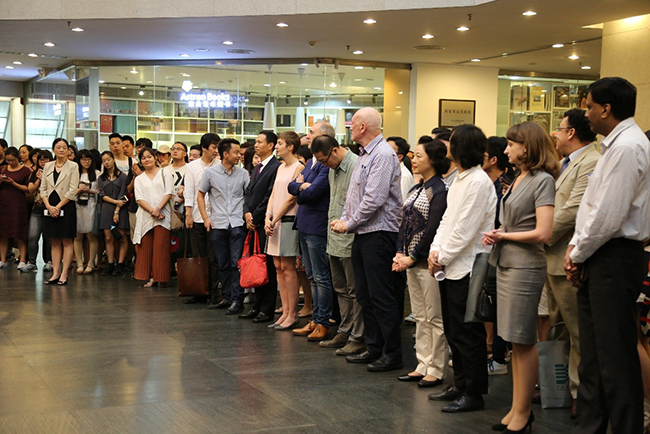 本次展览艺术家肖恩·斯库利、本次展览策展人菲利普·多德、英国驻广州总领事馆总领事卢墨雪、希腊驻广州总领事馆总领事格里高利·塔西澳普洛斯、广东省文化厅副巡视员王莉、中央美术学院美术馆馆长王璜生、广东省文化厅文化交流处副处长孙伟龄、广州美术学院造型艺术学院院长郭润文、广州美术学院教授齐喆、广州美术学院教授樊林、广州美术学院美术馆副馆长胡斌、广州美术学院副教授刘庆元、逵园艺术馆艺术总监黄轶群以及广东美术馆馆长王绍强、副馆长江郁之等出席了开幕式。