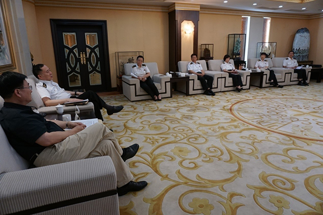 图3:参加会谈的广东省文化厅副厅长张奕民(右一)、广东省文物局局长龙家有(右二)、广东省文化厅文化交流处处长李再炎(右三)、广东美术馆馆长王绍强(右四)、广东省博物馆副馆长阮华端(右五)、广东省文化厅办公室副主任刁定宏(右六)。