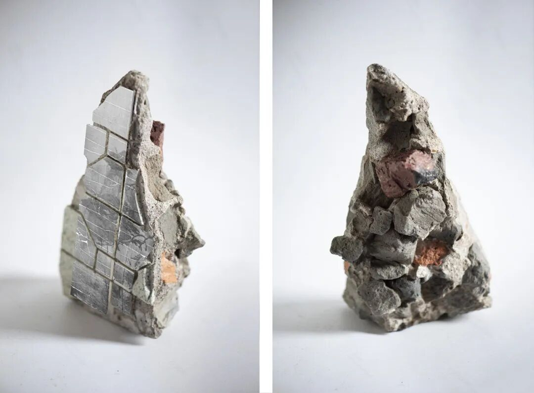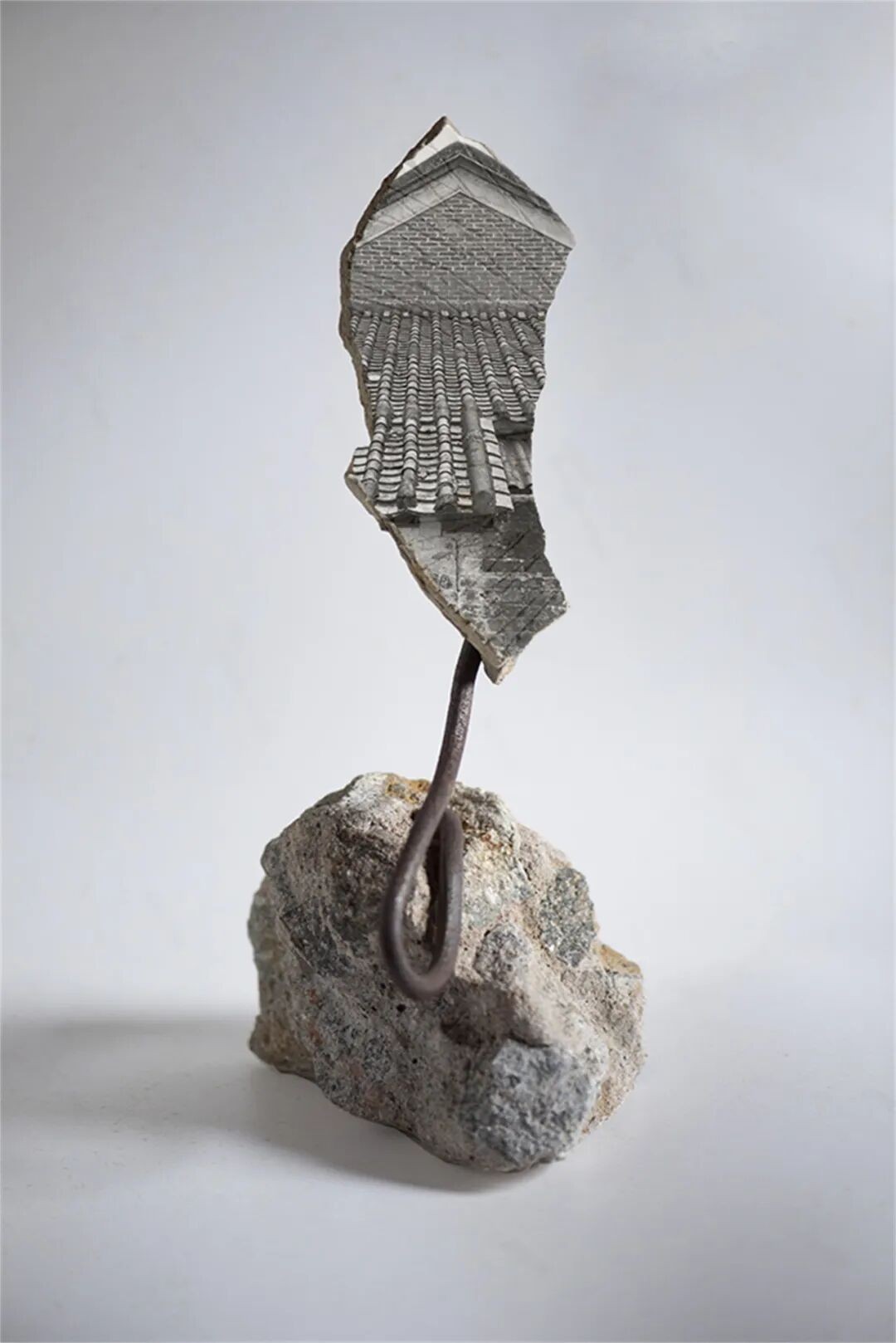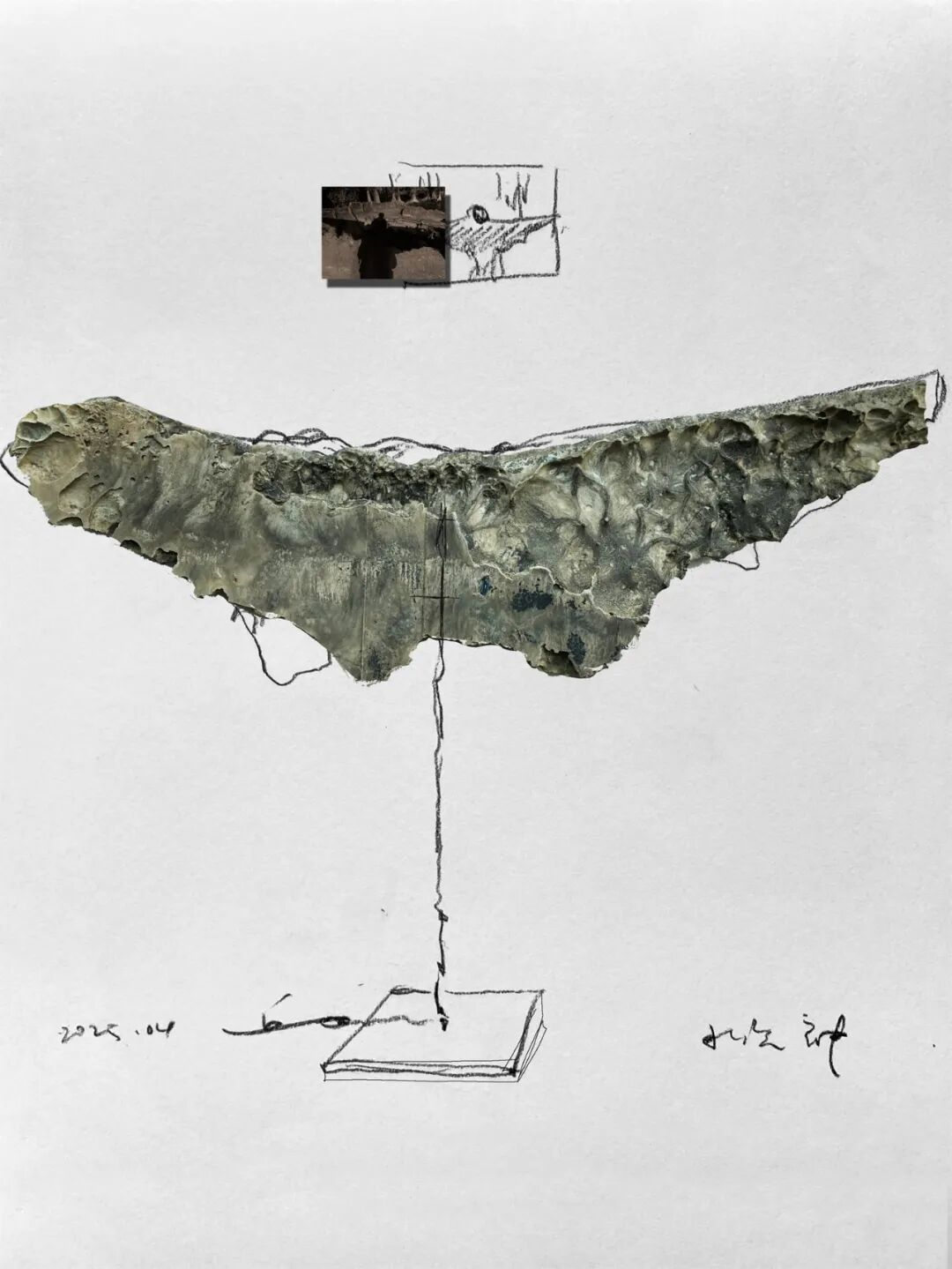 丘的创作坚持将摄影与实物材料结合: 观众面对的不仅是关于废墟的影像,更是废墟物质的直接在场——触觉性、重量感、质地差异无法被数字图像替代。收集、清洗、组合、拍摄、手绘——这些劳动密集型过程使作品沉积着艺术家的身体记忆,抵抗着算法生产图像的即时性。这两组作品不是对前工业时代的怀旧,而是在数字化与全球化的当下,重新思考物质的能动性与艺术实践的生态责任。