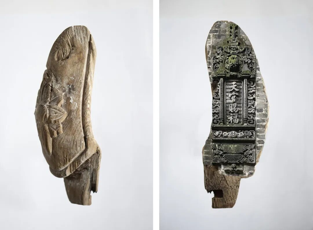 《洲表村》系列取材自佛山洲表村现场收集的木雕残件、石米墙与砖块,构建出“物-影像”的双重档案。正面影像呈现传统建筑的精致细节——木雕门楣、灰塑装饰、青砖黛瓦;背面的瓷砖拼贴则是20世纪中后期现代化改造的物质遗留。这种正反面的并置构成了压缩的“时间地层”:传统工艺与工业化材料、手工痕迹与批量生产、文化记忆与现代化扁平——在同一块混凝土碎片上叠压共存。物质不再是被动的承载物, 而是主动的历史书写者,以自身的磨损、断裂、叠加记录着被官方历史忽略的微观叙事。