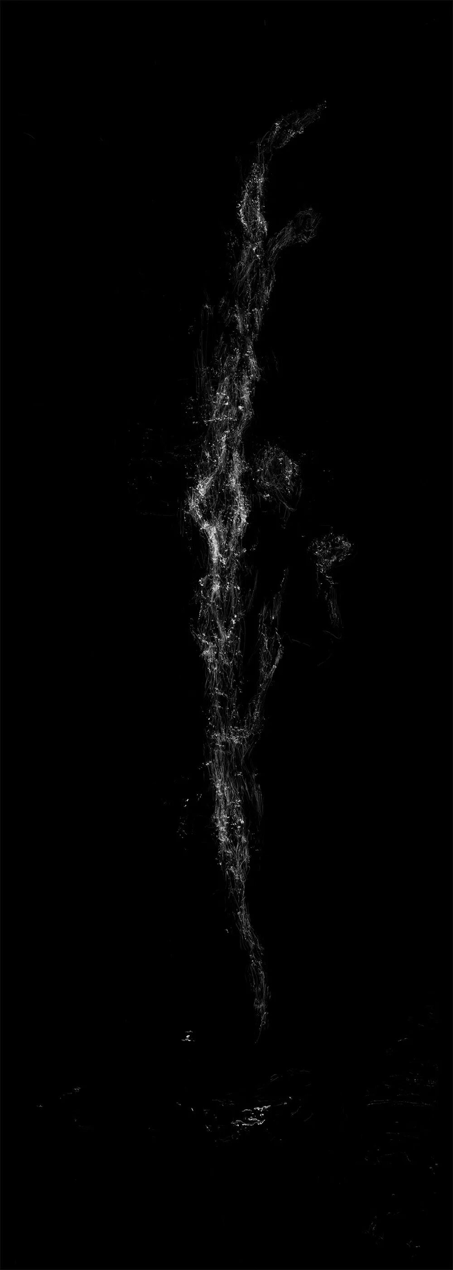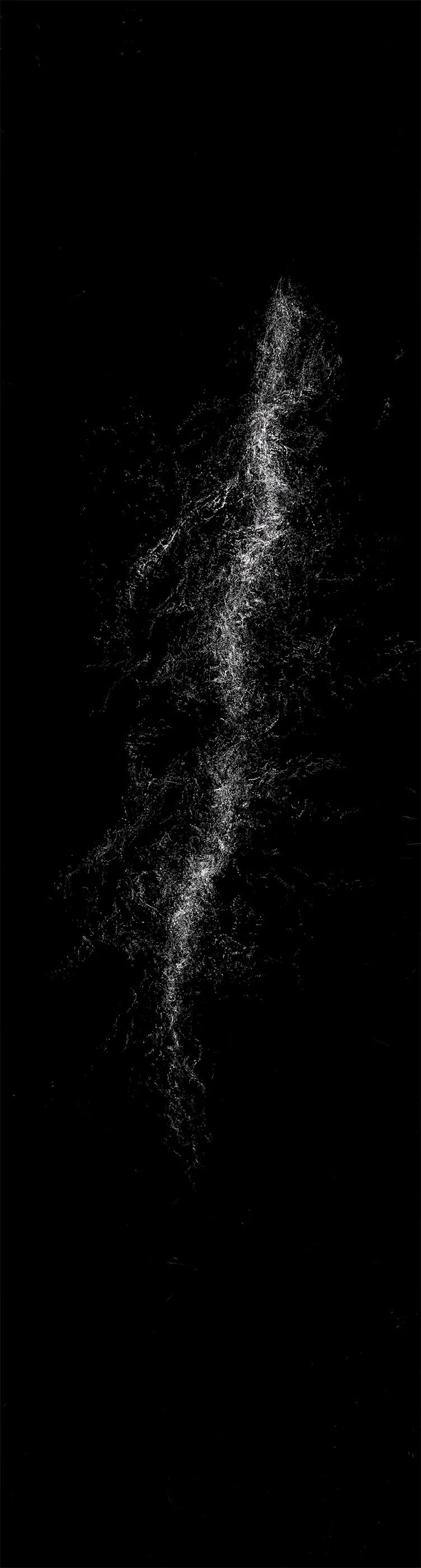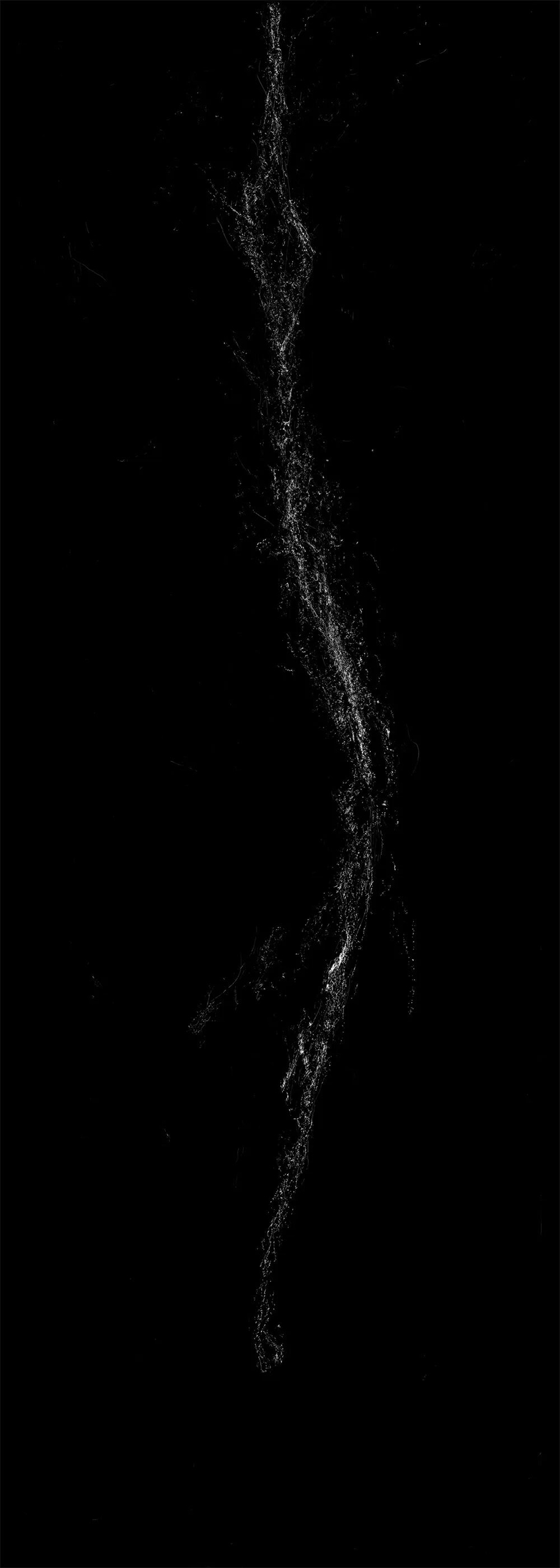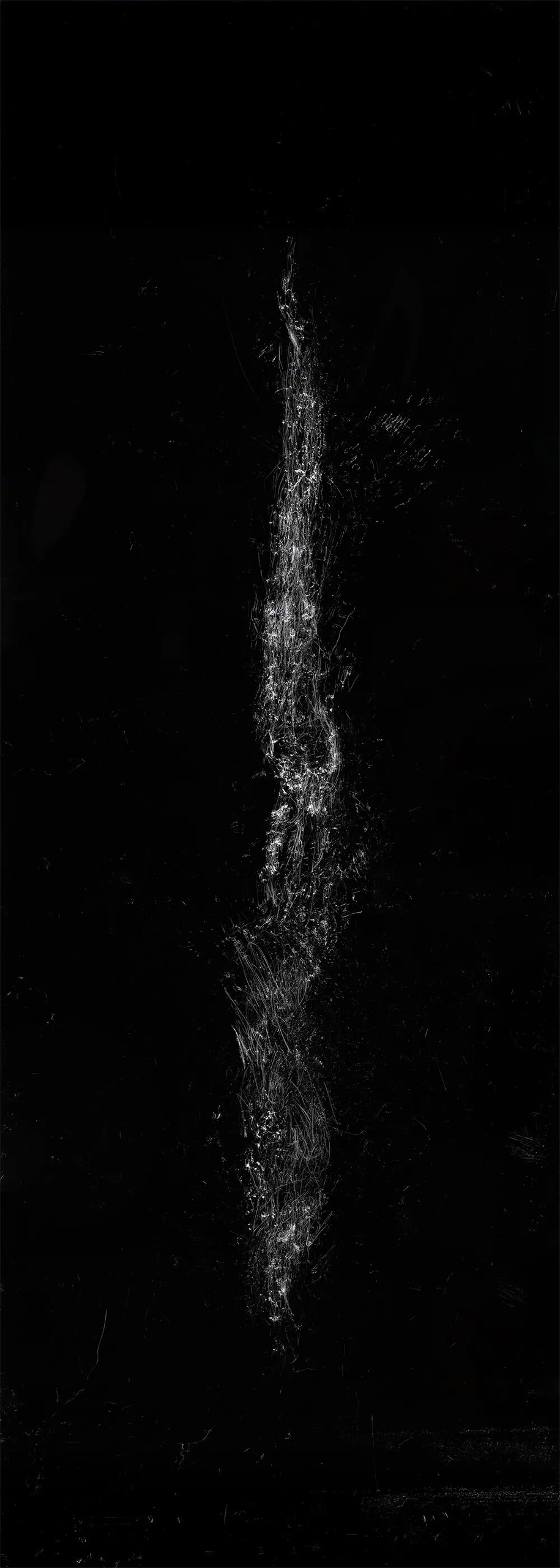 Waterfalls constitute a pivotal element within Chinese landscape painting, where the poetic imagery of ‘mistaken for the Milky Way descending from the ninth heaven’ reflects the divine creation of heaven and earth. This series employs photographic film as its medium, scraping away the silver halide base to reveal the film's inherent silver tones, thereby resonating with nature's spiritual essence through the interplay of light and shadow. The inherent tension between the film's pitch-black silence and the cascading, luminous flow of the waterfall emerges organically. Within this inverted imaging where black becomes white, illusion and reality intertwine; one may recline amidst the symbols of landscape, letting the gaze roam freely. Through quiet contemplation, one glimpses a state of effortless being, imprinting the interwoven existence of history and nature.