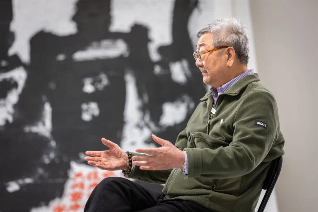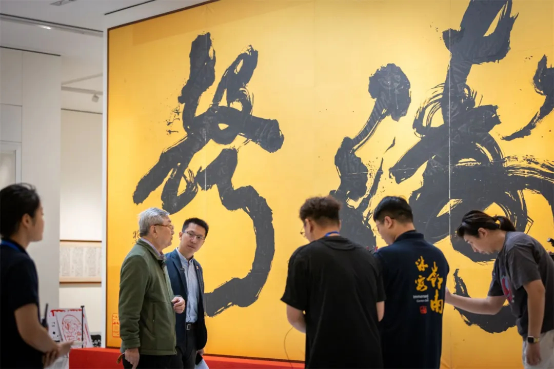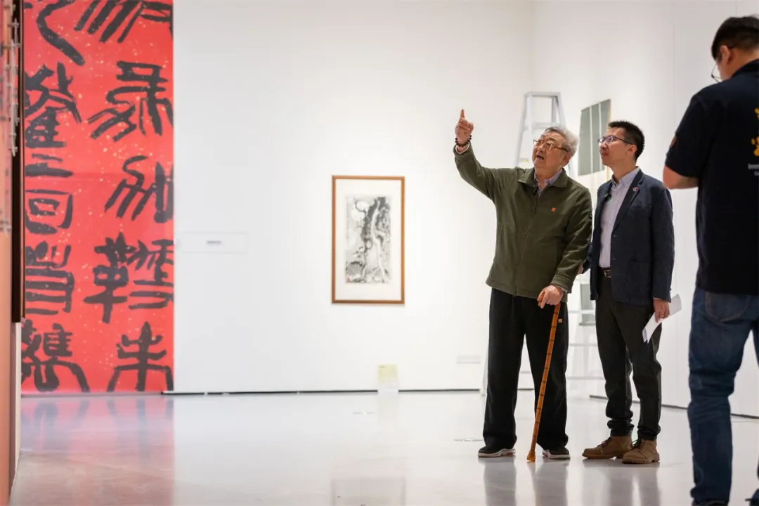 3月25日下午,韩天衡先生亲临展厅,对布展工作进行指导,并接受媒体专访。