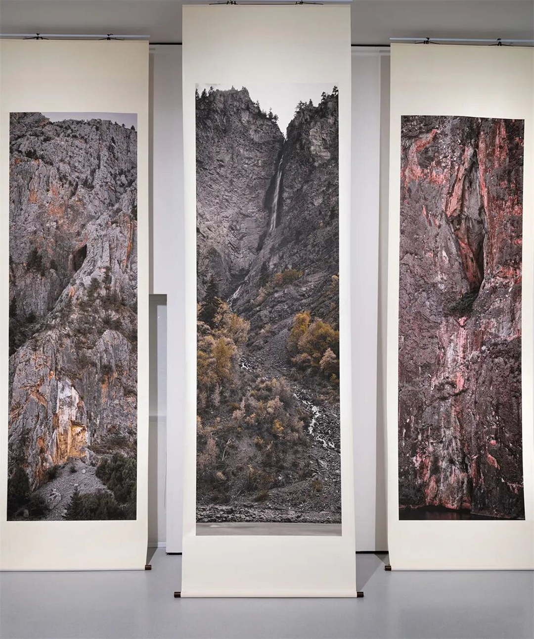 Technological developments continually reshape the ways humans observe and perceive the world. Bycombining a 150-megapixel ultra-high-resolution digital back with a tilt-shift lens of exceptional range, the photographer revisits western Chinese landscapes he has photographed multiple times before. With a field of view, perspective, and resolution beyond the human eye, he produces images thatresonate in spirit and form with Han and Tang tomb and grotto landscape murals, as well as classical Song and Yuan shan shui paintings. In the post-production process, computer software and algorithms substitute for the human eye and hand, generating colors and forms that the artist believes more closely approximate the original essence of ancient shan shui paintings.