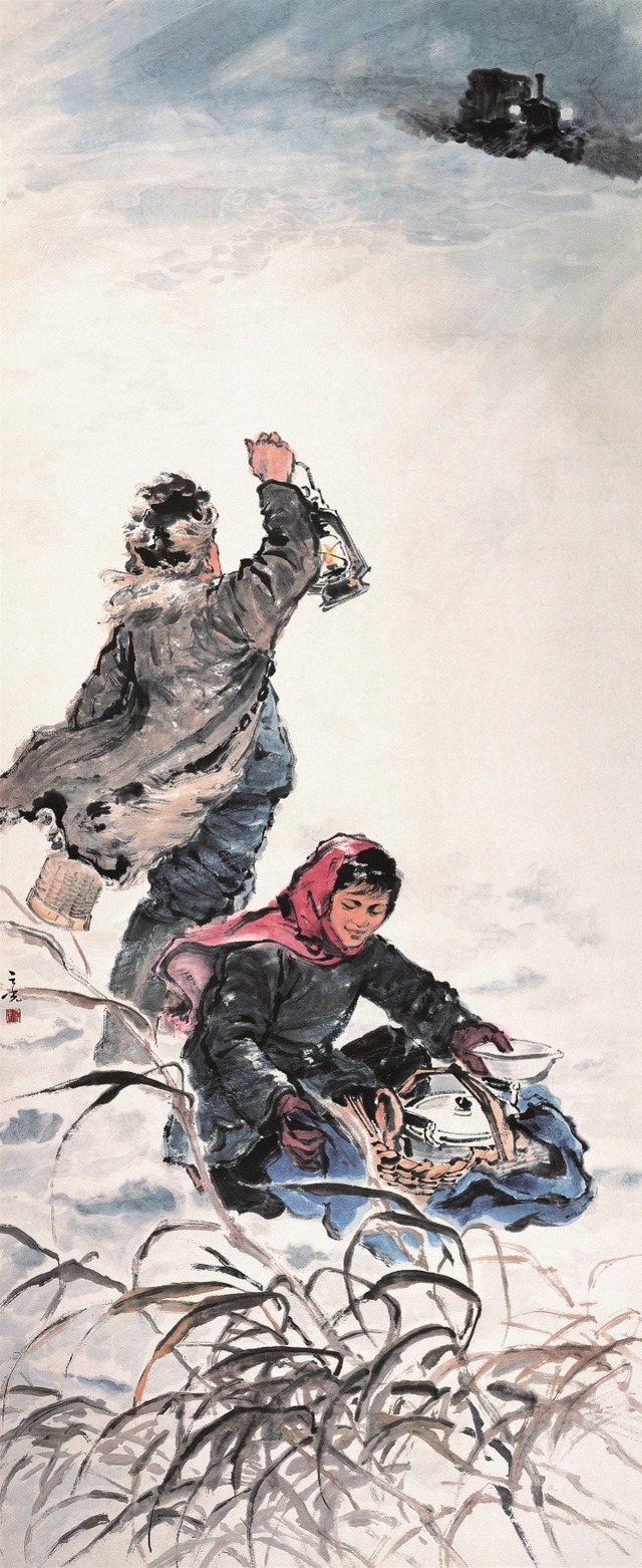 杨之光的《雪夜送饭》是这一时期的代表作之一。画作展现了劳动中的英雄主义,充满了革命的理想,使观者感受到时代气氛和深厚的阶级友情。