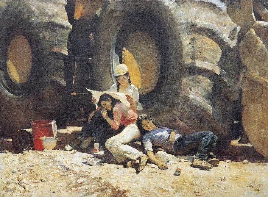 杨培钊认为:《特区(的)正午》是一幅颇为成功的作品。画面刻划的是三个青年女工午餐后休息时情景。一个在看报又担任着警戒任务,二个相互偎依的躺着,背景是一辆现代化的大型机车的轮胎,真大,大到三个人只比上它一只角。从这个局部的细节处理中,可以透见施工的现代化程度和规模。从人物形象,服装特征,阳光和色调中,可以透见典型的环境。三个女工形象塑造很成功,体态极美,动作也不矫揉做作。从形象、服饰、动作举止上能透见她们的文明程度和时代气息。她们热爱劳动,因为她们热爱无限美好的现实生活。他们的工作虽普通又平凡,即在平凡之中寓不平凡之意。美好生活的幸福大厦就是她们这些平凡的普通劳动者的双手建成的,她们无名,然而却是真正的英雄。特区的建设者,美好生活的缔造者们百忙之中的这一小息,又美,又有诗意。