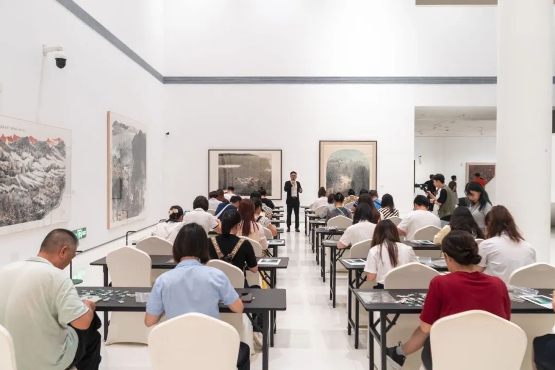 展览配套的公教活动“拼图识画游戏”也在当天举办。在活动现场,广东美术馆教育专员植凯鹏组织观众以本次展览展出的广东美术馆馆藏作品《步步高》为拼图形象进行互动。通过完成描绘农忙时节的愉快场景拼图,观众们学会透过观察画作细节及鲜活的色彩,感受作品呈现的美好寓意,理解馆藏艺术的美妙之处。