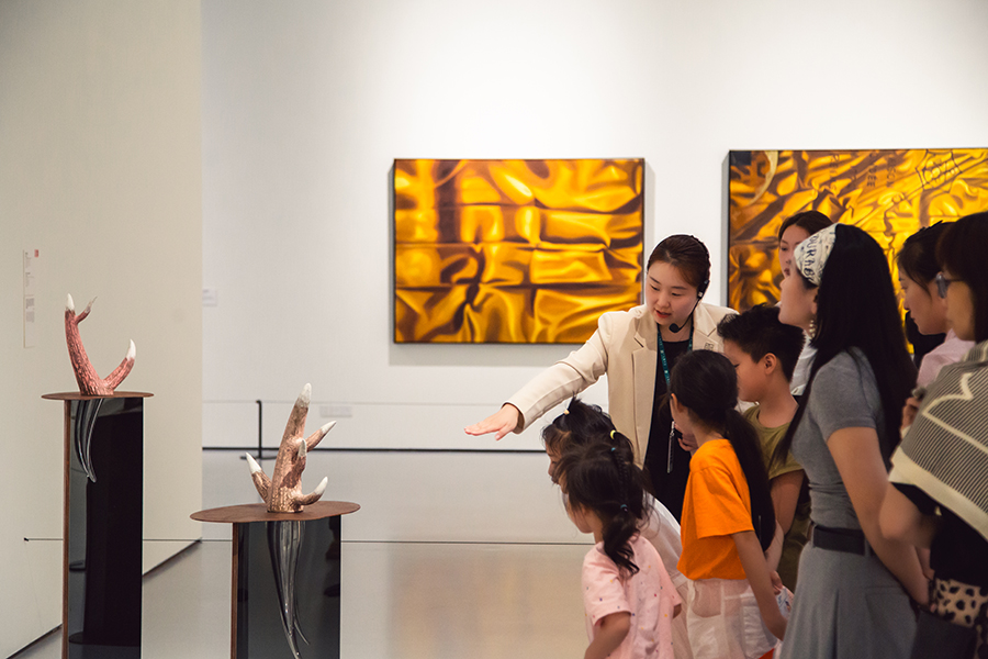 “粤港澳大湾区当代艺术展”期间,公共教育团队推出多场公众导览活动,通过线上资源与线下导览相结合的方式,为观众构建了多维度的参观体验。