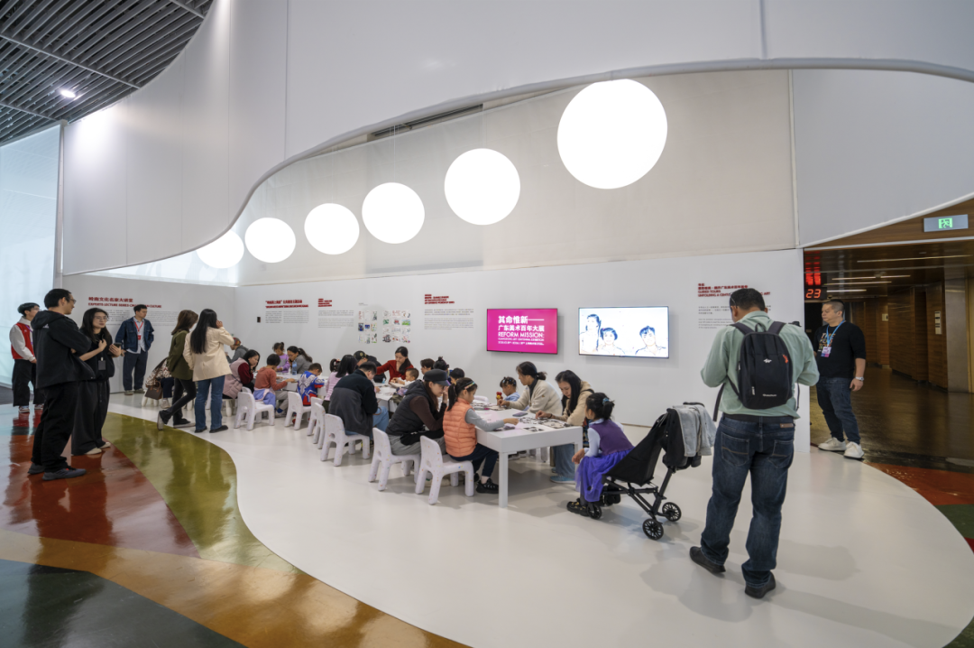 在“其命惟新——广东美术百年大展”展览期间,广东美术馆与上海美术馆公共教育团队共同策划推出“岭南遇上海派”公共教育主题活动,通过三百多场活动和双城联动的模式实现跨地域的文化交流共振。在上海美术馆场馆内设置的公共教育互动区,成为不同年龄段的艺术爱好者交流互动、参与艺术游戏的平台。两百多场导览活动,由展览总策划、沪上知名学者、公共教育专员和志愿者主讲,从不同角度讲述广东美术百年故事。不同主题的美育活动,引导观众在鉴赏与创作中感受“南风沪韵”,深度体验艺术的魅力与创作的乐趣。“Artwalk 海派与岭南文化之旅”“艺术脱口秀”等沪上特色项目,以接地气的方式建立了上海观众与广东美术的链接。两馆携手开展的馆校合作项目深度开发大展资源,上海美术馆的“美术馆现场教学课”将师生带进场馆与原作面对面,广东美术馆的“艺术进校园”系列则将展览资源“打包”送入学校,建立两地师生的情感链接,探索艺术资源融入学校教育教学的多维方式。大力发展文化志愿服务,以专业、热情的美术馆志愿服务助力教育活动的顺利开展。