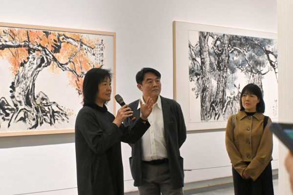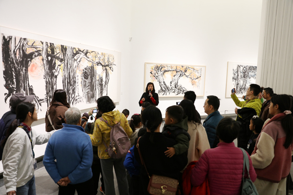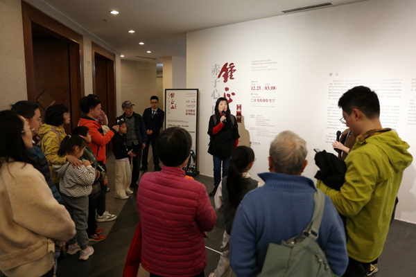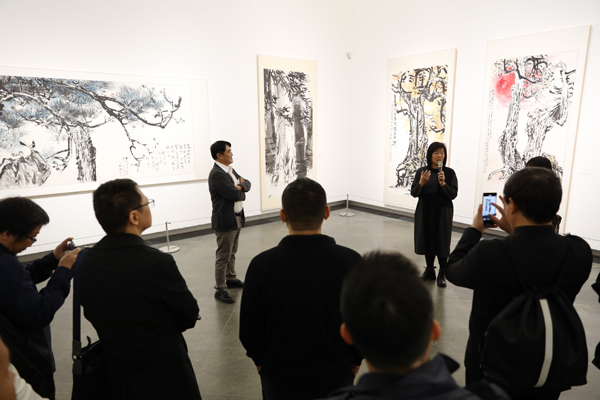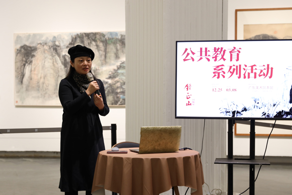 锺正山儿子锺泰元和女儿锺琳、锺璟共同带领观众观展,从历史背景、社会贡献、艺术贡献、艺术价值四方面切入,详细地介绍展览的策划理念,对各版块展出作品进行了详细的解读,让观众真切地感受到贯穿于其创作与教育教学的高尚品质和无私精神。