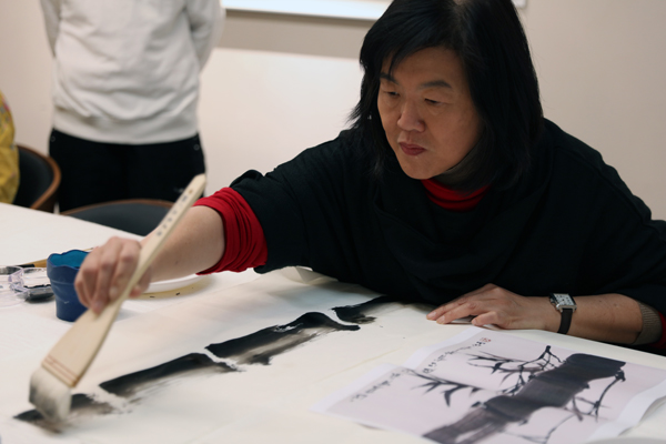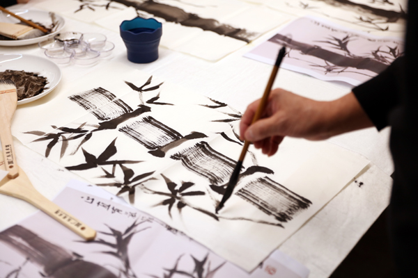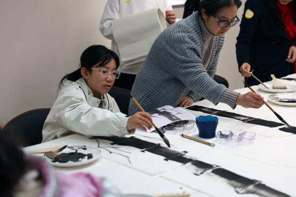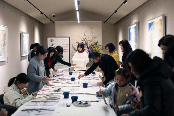 由艺术家家属锺琳女士亲授的“龙竹精神”亲子艺术工作坊充满了温情与文化传承的意味。锺琳引导亲子家庭观赏锺正山笔下的龙竹,并体验其独创的排笔画竹技法。她鼓励参与者“不要画得跟老师一模一样”,这种教学理念在节日活动中悄然传递了艺术创新的真谛——正如锺正山所说,艺术创作贵在“画出自己的风格”。家长与孩子共执画笔的场景,让美术馆成为跨代际审美启蒙的温暖课堂。