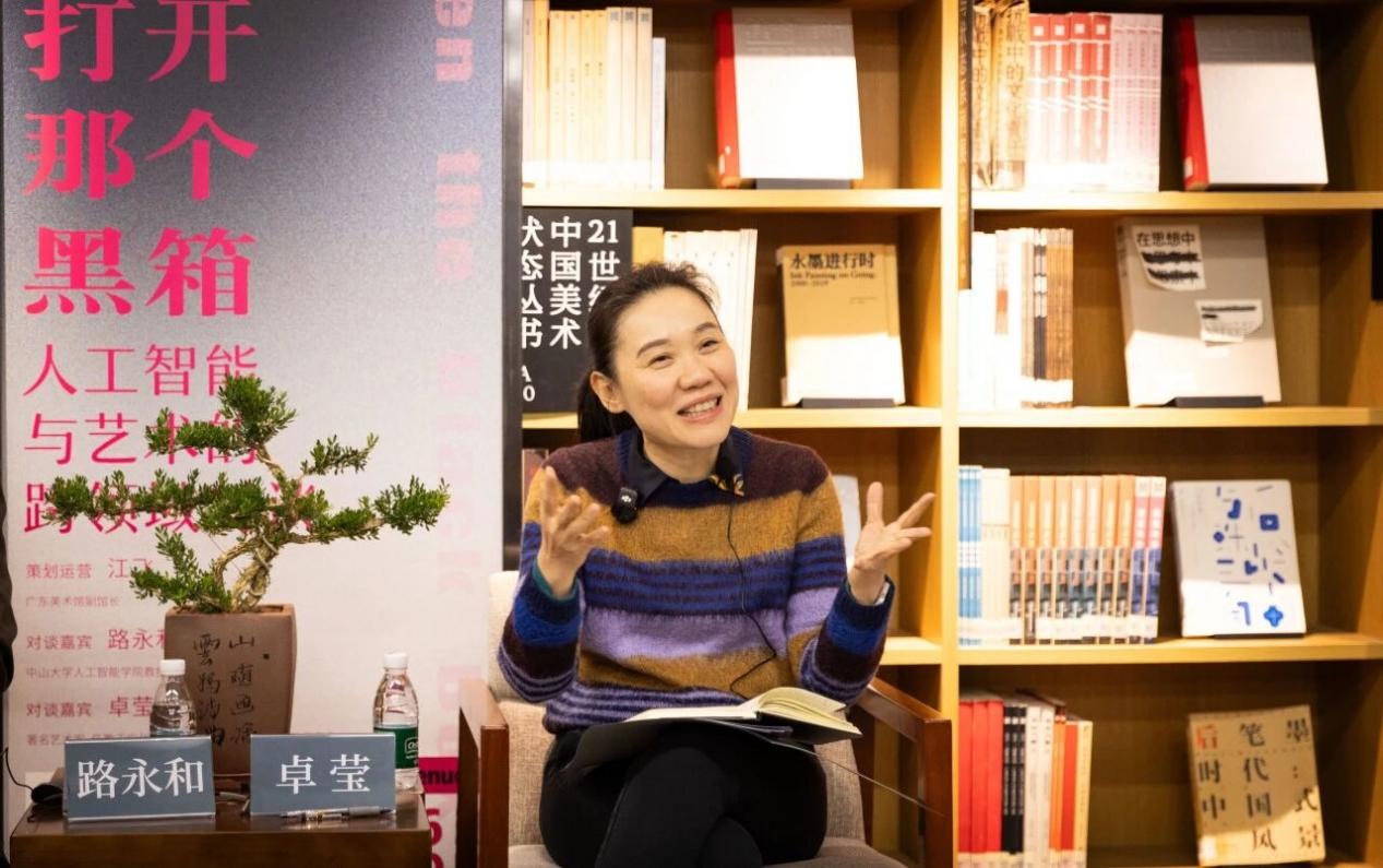 第二期“二沙艺术讲坛|艺文共振”于2026年1月10日下午在广东美术馆二沙本馆美术文献研究中心图书馆顺利举行。本期对谈以“打开那个黑箱!——人工智能与艺术的跨领域对谈”为题,特别邀请中山大学人工智能学院路永和教授和广州美术学院视觉艺术设计学院卓莹老师,共同展开一场技术与艺术的双向对话。