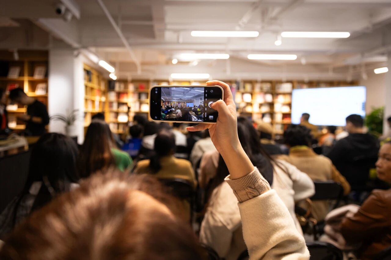 在互动环节中,嘉宾与现场观众展开了多轮深入对话,推动讨论在技术、艺术与哲学维度持续延展。现场提问气氛极为踊跃,共有八位观众先后获得发言机会,将现场氛围推向高潮。其中一位观众向路永和教授提问:“如果不具备编程或理科背景,应当从何入手学习人工智能?”路教授回应指出,普通人接触AI无需从复杂的计算机语言起步,更切实的路径是结合自身行业,从学习应用型AI模型开始,逐步理解技术逻辑与使用场景。为充分回应每位参与者的思考,本环节特别延长时间,让思想碰撞持续升温。现场交流节奏紧凑、气氛热烈,展现出观众对议题的高度投入与多元视角。