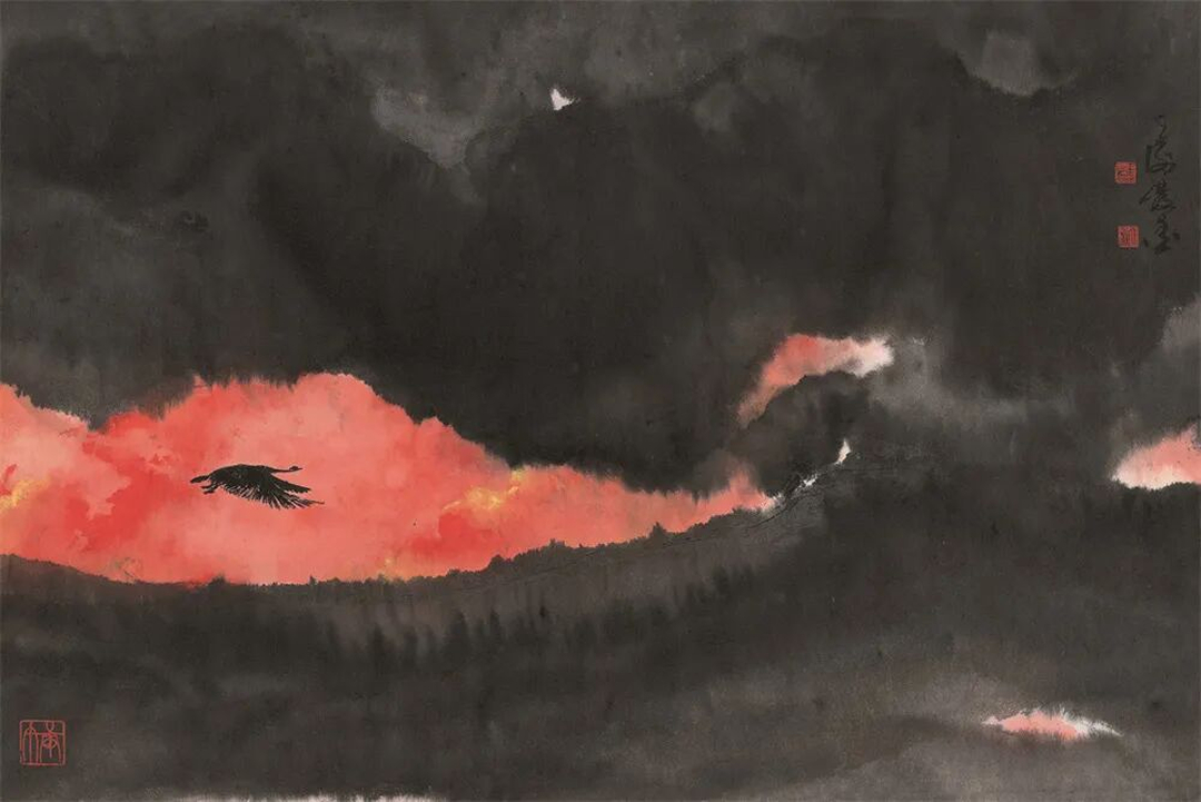 As a leader of contemporary Shanghai School art, Mr. Han Tianheng began practicing calligraphy at the age of four and seal carving at six. His artistic journey has spanned over eighty years, yet he still refers to himself today as an "old student." His painting, calligraphy, and seal carving each reach individual peaks while remaining interconnected. In painting, unlike many seal carvers and calligraphers who only create simple sketches "incorporating calligraphy into painting," Mr. Han's subjects cover both ink wash and heavy color (Zhongcai). His compositions draw from the rhythmic spacing of seal carving; his lines utilize the rounded and robust brushwork of calligraphy; his artistic interest inherits the classical essence of the Tang and Song dynasties; and his use of color integrates the intense, full-bodied tones of Western palettes. The "Han Bird" imagery he created is described by him as having "three years of schooling," possessing both scholarly elegance and vitality.