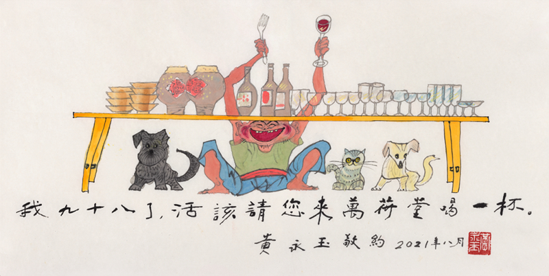 Inscriptions: I am ninety-eight; it is only right to invite you to Wanhetang for a drink.