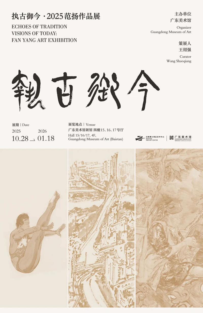 The Echoes of Tradition, Visions of Today: Fan Yang Art Exhibition will be grandly presented at the Guangdong Museum of Art (Baietan) in Halls 15, 16, and 17, from October 28, 2025, to January 18, 2026. This exhibition presents a selection of Fan Yang's finest works from the past two decades, showcasing the evolution of his artistic practice and vision. The title, Echoes of Tradition, Visions of Today, inspired by Laozi’s Dao De Jing, chapter 14: “Hold fast to the ancient Way to master the present” (trans. D. C. Lau, Penguin CLassics, 1963) encapsulating a profound principle—drawing on tradition while transforming it through contemporary insight. This concept lies at the heart of Fan Yang’s artistic vision: to forge the ancient into the new, expressing his inner spirit through the ink of today.