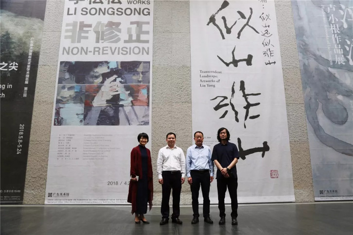 △文化和旅游部外联局副局长朱琦(右二)、广东省文化厅副厅长张奕民(左二)与广东美术馆馆长王绍强、副馆长邵珊合影