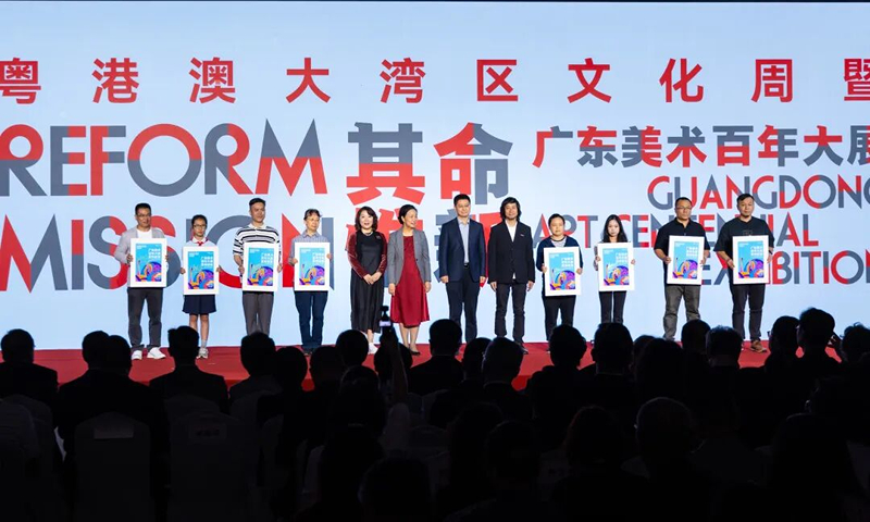 在开幕式现场,8名来自不同领域的上海市民代表,获颁“广东美术百年大展宣传使者”荣誉称号。他们将带动更多市民走进本次展览,欣赏和了解广东美术,推动粤沪文化更紧密交流。开幕式尾声,艺术家与市民代表共同为本次文化周揭幕,宣告第二十四届中国上海国际艺术节粤港澳大湾区文化周以及“其命惟新——广东美术百年大展“正式启幕。