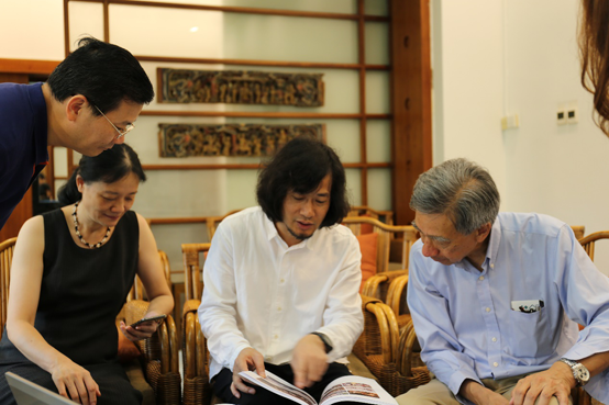 2017年7月15日,美国贝氏建筑事务所董事长、世界著名建筑大师贝聿铭的次子贝建中先生,应王绍强馆长邀请,专程从美国来我馆,商谈我馆改扩建事宜。王绍强馆长、邵珊副馆长、学术事务部兼后勤管理部主任钟克珍、学术事务部副主任廖建芬,改扩建办执行负责人程群芳,研究策展部黄海蓉等参与会谈。