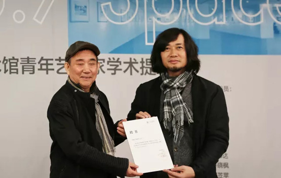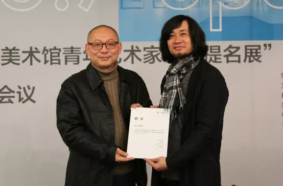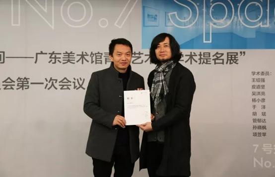 广东美术馆馆长王绍强为策展人于洋颁发聘书