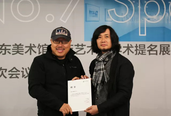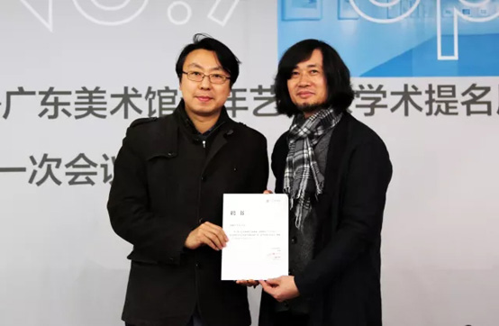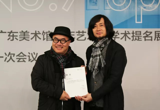 广东美术馆馆长王绍强为策展人管郁达颁发聘书