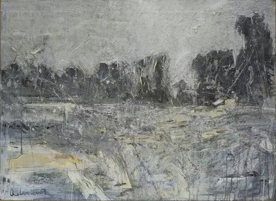 《埃斯塔克的残雪——致塞尚(一)》,木板、油彩、综合材料,79.5cm×109cm,2008年