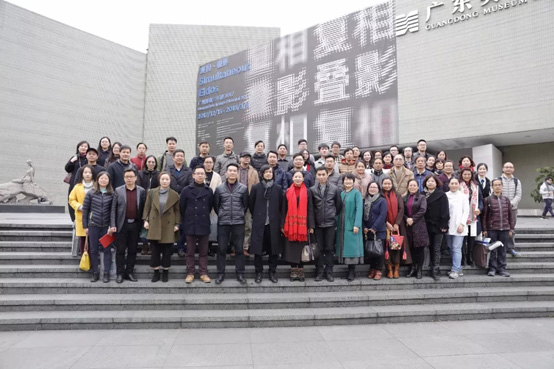 岭南美术出版社的编辑与广东美术馆现当代美术文献出版中心的编辑合影,广东美术馆馆长王绍强(左五),岭南美术出版社社长李健军(左六),岭南美术出版社副总编辑刘向上(左四)