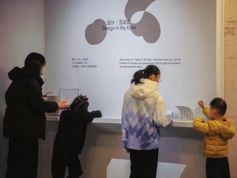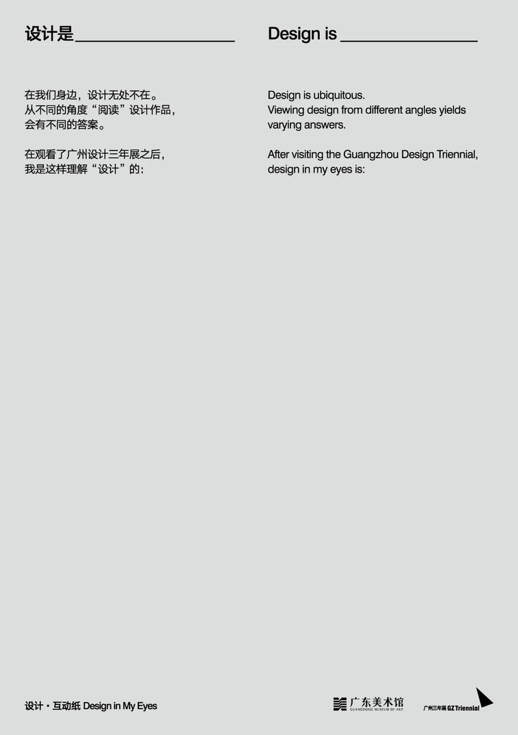 在主题展场馆内,现已投放了两款灰色的互动纸,邀请观众带着问题看展览,记录和分享观展后对“设计”的思考。